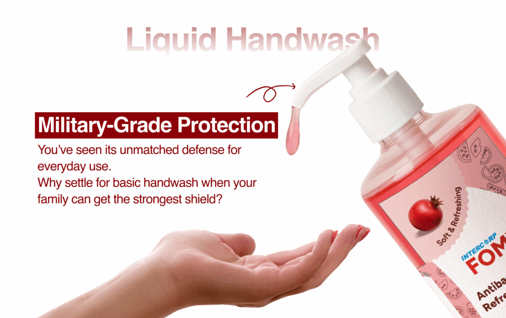 At Intercorp, we know that true protection comes from quality you can trust. Fomy liquid handwash is crafted with ISI-certified standards, combining effective germ removal and skin-friendly care for your hands.