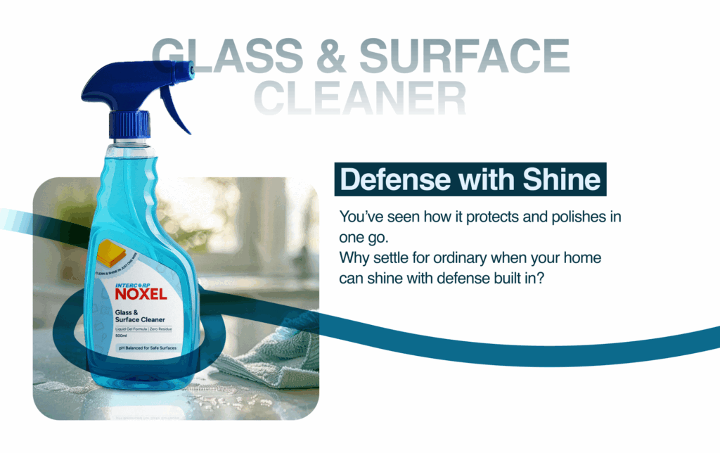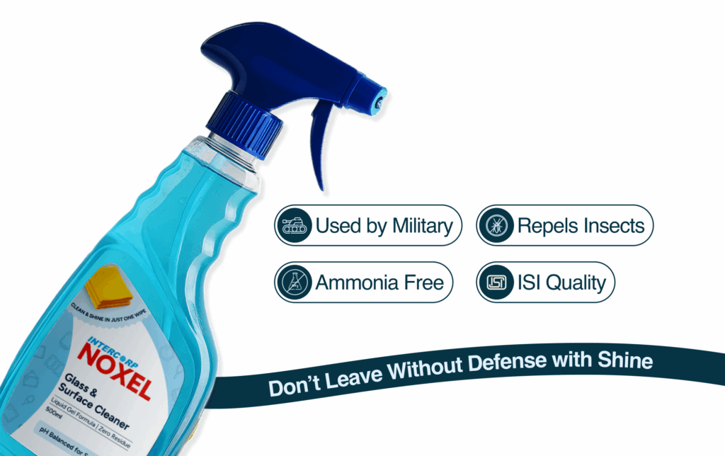 Whether you’re wiping down kitchen counters, glass doors, or facility spaces, Noxel delivers a spotless shine and lasting protection. Trusted by the Indian military, backed by ISI-certified quality, it’s the cleaner you can rely on anywhere.