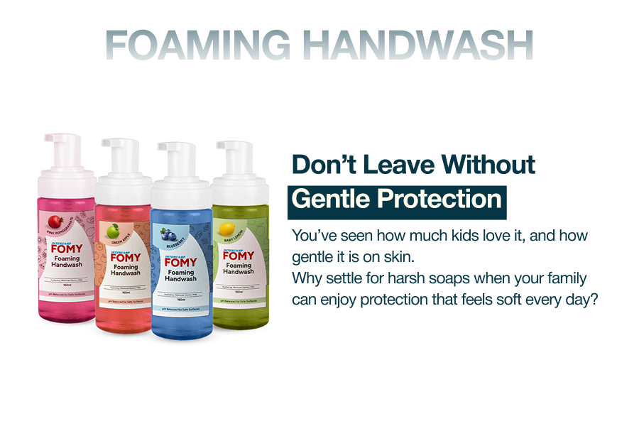 Enjoy feeling hygienic and refreshed with Intercorp’s foaming handwash. With Fomy you never have to make the effort to work up a lather. It creates a stiff whipped foam that does not drip. Fomy hand wash is formulated to kill germs while protecting hands of the whole family. It leaves your hands soft, smooth and hydrated with the invigorating natural fruit scents. Fomy’s delightful fragrances combine with a smooth, indulgent foam that leave hands feeling refreshed and reinvigorated. Keeping your hands clean is your first weapon in fighting the spread of germs and therefore keeping yourself illness free. Germs are virtually everywhere and cause terrible infections that can circulate directly from person to person through the hands. Our foam handwash is antibacterial and one of the easiest ways to wipe out germs and reduce the chances of becoming ill. This Foaming Hand Soap is non-toxic, effective, and versatile skin cleanser made from biodegradable ingredients that were carefully chosen and developed into a premium solution by Intercorp, a trusted source for natural, child & pet safe, hypoallergenic, and effective household products. This proprietary blend of safe ingredients is family friendly and free from harsh chemicals and fumes. This unique formula leaves no residues. Our hand wash is tough enough for grease, gentle enough for children, and pure enough to naturally recycle in the environment. With INTERCORP FOMY Handwash you can be sure that your hands, are in good hands. Order now!