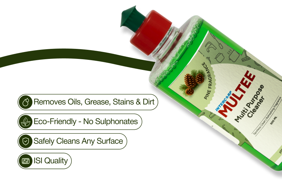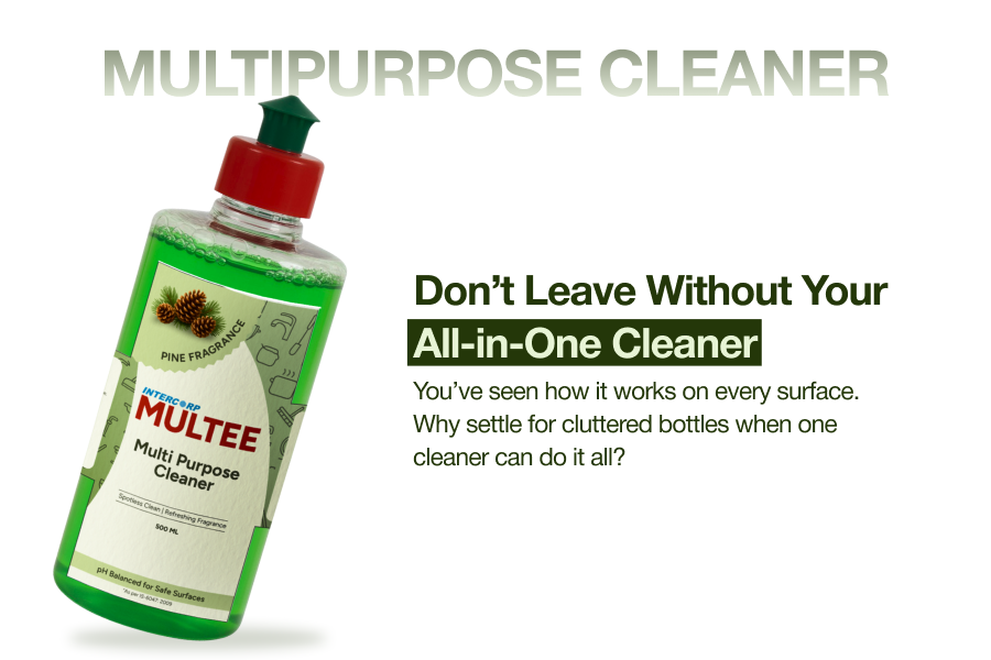 Intercorp’s Multee is a versatile liquid cleaner for bathroom floor, stairs, open space large marbles and tile floors, large glasses etc. Removes dirt, stains and odor. Can also be used as grill and tap cleaner to cut grease/oil/dirt build up. Remove tough stains with minimum effort. Make your home sparkling clean with our multipurpose cleaner. Whether it is burnt-on food, rust, grime between kitchen tiles or salt deposits on taps, Multee leaves every surface sparkly clean just like new. Suitable for all kinds of households. Contains cetrimide and balanced pH makes Multee an effective and germicidal. Order now!