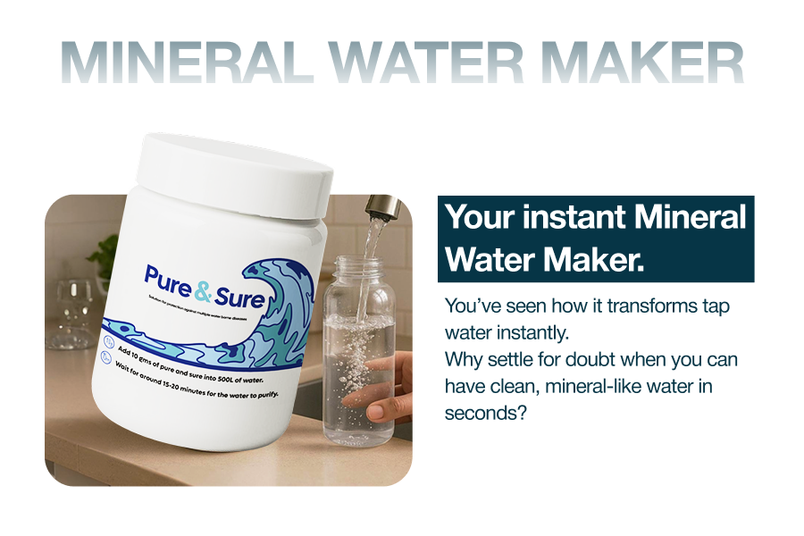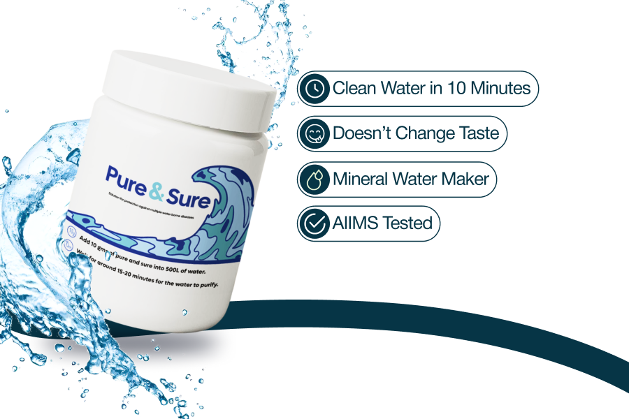 INTERCORP PURE & SURE Instant Water Purifier and Disinfectant is an all-in-one solution designed to provide instant purification and comprehensive disinfection of water. This product is ideal for homes, kitchens, families, offices, restaurants, and commercial spaces, offering a versatile solution that can be used to sanitize drinking water, clean fruits and vegetables, disinfect water tanks, floors, and sanitize grills, doors & other surfaces. By simply adding 10 gm of the product to 500 liters of water, you can instantly purify your water supply, ensuring that it is free from harmful bacteria, viruses, and pathogens. The formulation works quickly and efficiently, providing safe drinking water in just 15-20 minutes. When used for water tank cleaning, it effectively sanitizes water storage systems, ensuring that stored water and water pipes remain free from contamination. The product is safe to use, non-toxic, and does not leave any harmful residues behind, making it ideal for regular use in both domestic and commercial settings. Whether you’re looking to improve your water quality, ensure your food is safe to eat, or maintain a clean and sanitized environment, INTERCORP PURE & SURE Instant Water Purifier and Disinfectant is a reliable, efficient, and cost-effective solution for everyday sanitation needs. Order now!
