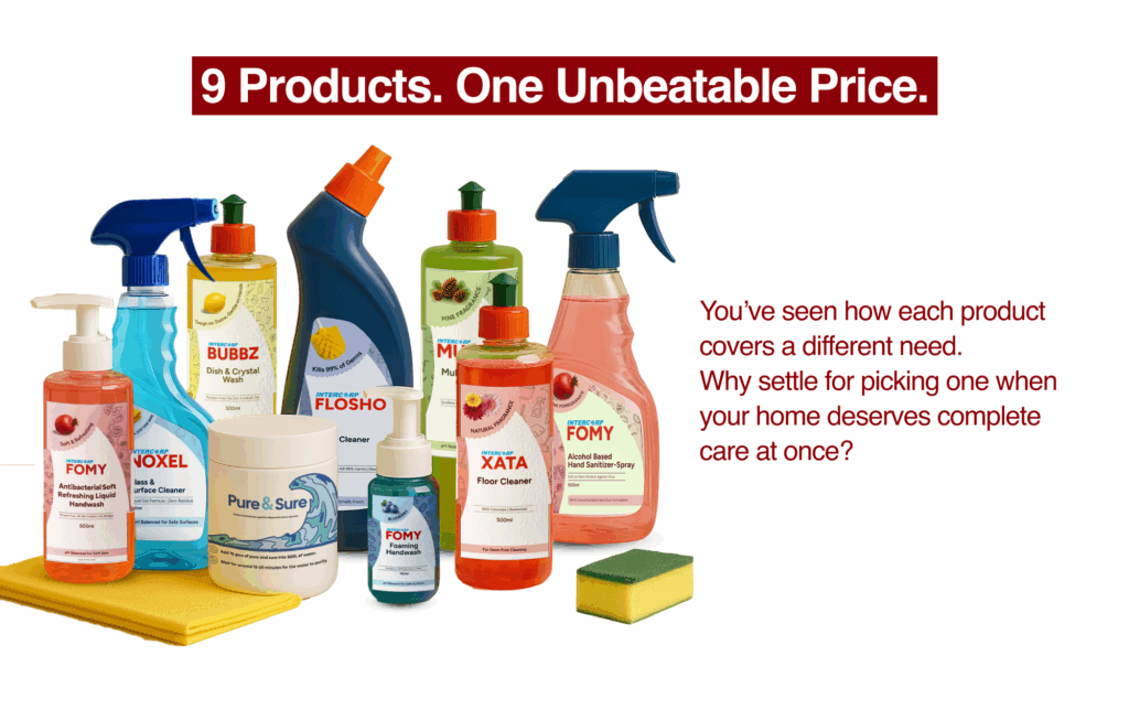 • Bring home the ultimate hygiene and care kit , nine trusted solutions designed to keep your family, your spaces, and your lifestyle worry-free.